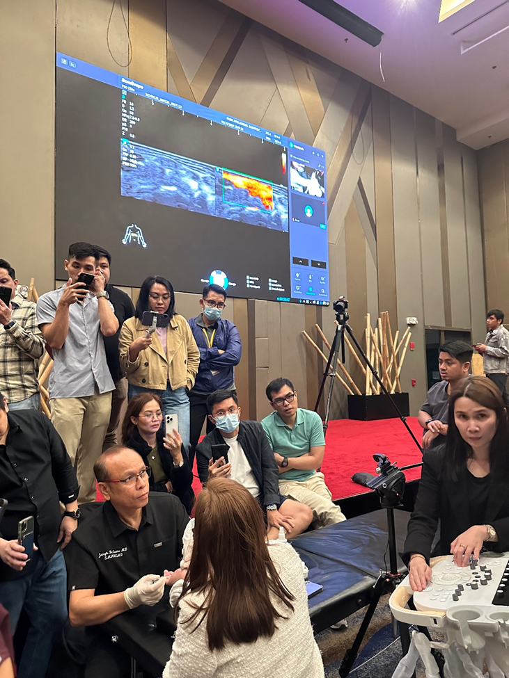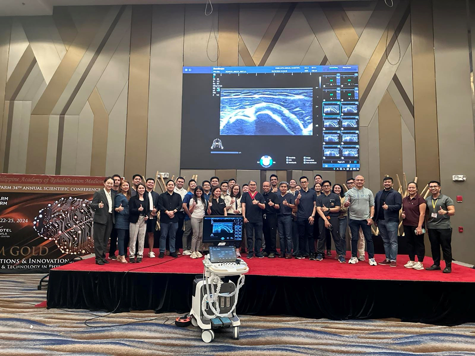 On February 25, 2024, the first musculoskeletal ultrasound post-conference skills laboratory workshop was conducted. Led by a roster of Registered Musculoskeletal Ultrasound (RMSK) certified faculty by the Alliance for Physician Certification and Advancement (APCA), the workshop focused on high-yield topics on the shoulder, wrist and hand. The program included lectures on anatomy of the shoulder, discussed by Rochelle Angelica Saratan, MD, FPARM, RMSK, while the scanning protocol was handled by Franklin Domingo, MD, FPARM, RMSK. The anatomy of the wrist and hand was presented by Ronald Christoher Cua, MD, FPARM, RMSK. This was followed by a discussion of the scanning protocol by Michael Francis Obispo, MD, FPARM, RMSK. Jeimylo De Castro, MD, FPARM, RMSK, DABRM, CIPS conducted the live patient demonstration of MSKUS-guided orthobiologic injection of the shoulder addressing a diagnosed case of chronic supraspinatus tendinosis. Another live patient demonstration addressing carpal tunnel syndrome by MSKUS-guided median nerve hydrodissection was performed, thereafter. In both cases, attendees were able to witness the history taking, conduct physical examination, correlate the MSKUS scanning findings, and finally, apply MSKUS-guided interventional regenerative treatment. There were break-out sessions where faculty members, including Edgar David Bionat, MD, FPARM, RMSK and Jan Tyrone Cabrera, MD, FPARM, RMSK, and attendees with a ratio of 1:4, were given time to scan using the described MSKUS scanning protocol.